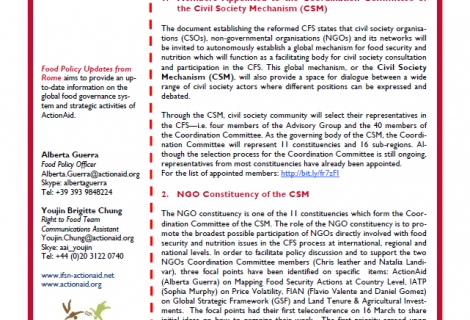 Food Policy Updates from Rome aims to provide an up-to-date information on the global food governance system and strategic activities of ActionAid.