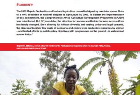 The 2003 Maputo Declaration on Food and Agriculture committed signatory countries across Africa to a 10% allocation of national budgets to agriculture by 2008. To bolster the implementation of this commitment, the Comprehensive Africa Agriculture Development Programme (CAADP) was established. But 12 years later, the situation for women smallholder farmers across Africa has hardly changed. Even allowing for Africa’s diversity and varying policy and legal contexts, the disproportionately low levels of access to and control over productive resources by women – and limited efforts to match policy directives with programmes on the ground – is widespread across Africa.