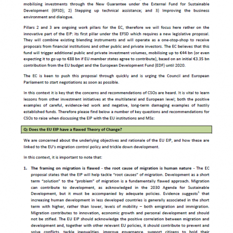 CSOs concerns regarding the EU External Investment Plan and recommendations to ensure a pro-poor instrument