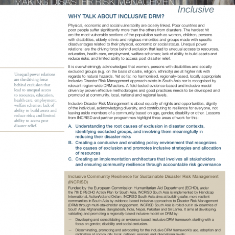 Inclusive Disaster Risk Management (DRM) is about equality of rights and opportunities, dignity of the individual, acknowledging diversity, and contributing to resilience for everyone, not leaving