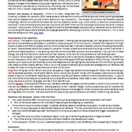 On 23rd June 2011, ActionAid and VOICE (Voluntary Organisations in Cooperation in Emergencies) hosted a panel discussion entitled From Disaster Risk Reduction to Comprehensive Resilience - Towards a