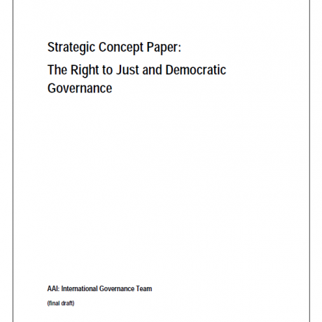 This document clarifies AA’s International Governance Team’s (IGT) approach to the theme ‘Just and Democratic Governance’. It builds on the Strategic Plan 2006-2010 and anticipates issues that will be